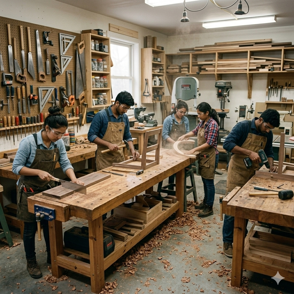 Learn the fundamentals skills of wood working over a 12-week period. Extend to a further 12 weeks for power tools